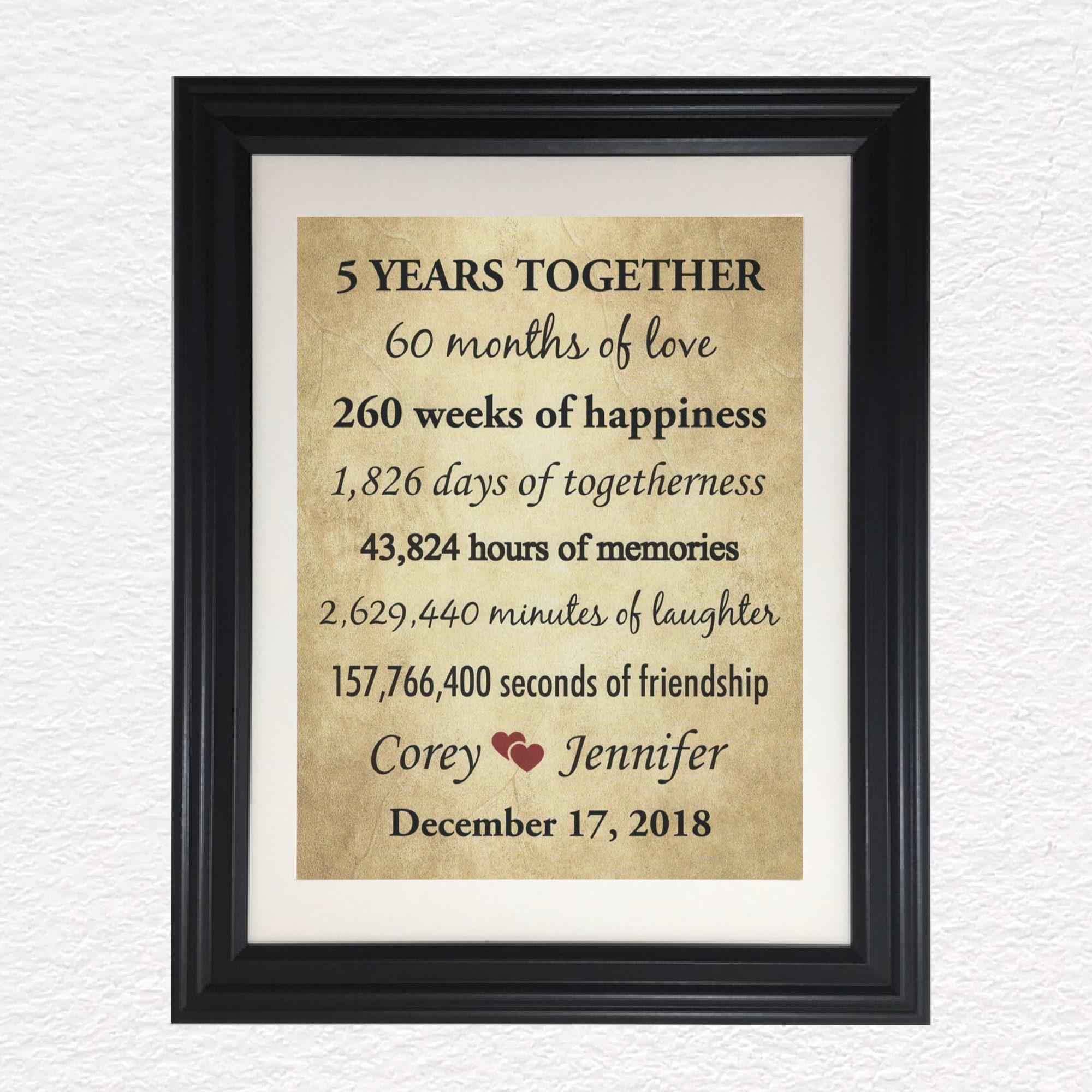 5 Year Anniversary Gift for Wife, 5 Years Together for Girlfriend