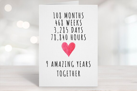 Printable Anniversary Card, 9th Anniversary Card, Nine Year